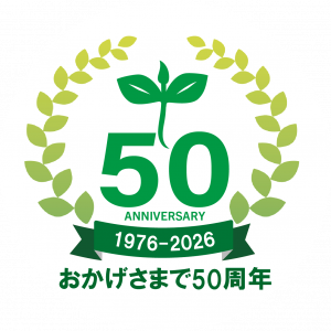 ロゴに添えた「おかげさまで50周年」という言葉には、これまでの歩みを支えてくださった皆様への深い感謝を込めました。